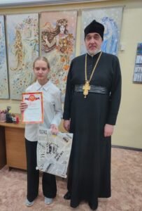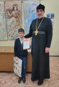 21 ноября 2025 года на базе МУДО «Сланцевской детской художественной школы» состоялось награждение обучающихся, участников районного конкурса «Красота Божьего мира». Поздравить победителей и участников конкурса пришли: помощница благочинного Сланцевского округа Кулешова Марина Александровна и помощник благочинного по катехизиторской работе отец Дионисий (Копытов).