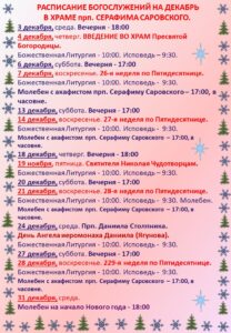РАСПИСАНИЕ БОГОСЛУЖЕНИЙ НА ДЕКАБРЬ